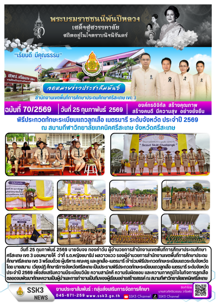 พิธีประกวดทักษะระเบียบแถวลูกเสือ เนตรนารี ระดับจังหวัด ประจำปี 2569 ณ สนามกีฬาวิทยาลัยเทคนิคศรีสะเกษ จังหวัดศรีสะเกษ