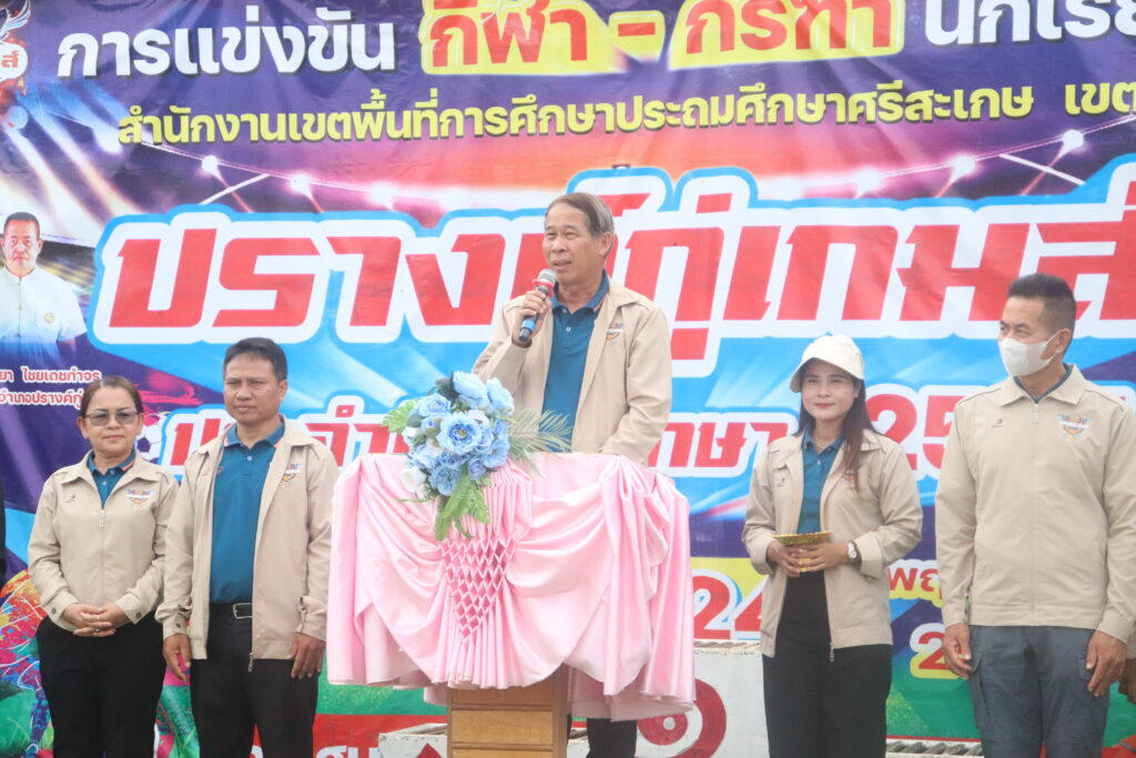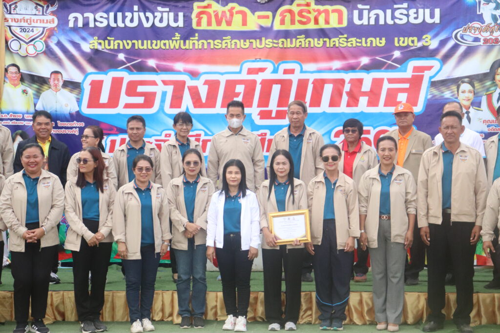 ในวันที่ 24 พฤศจิกายน 2567 เวลา 14.30 น. ว่าที่ร้อยตรีสำรวย นกงาม ผู้อำนวยการสำนักงานเขตพื้นที่การศึกษาประถมศึกษาศรีสะเกษ เขต 3 เป็นประธานในพิธีปิดการแข่งขันกีฬา กรีฑานักเรียน สำนักงานเขตพื้นที่การศึกษาประถมศึกษาศรีสะเกษ เขต 3 ปรางค์กู่เกมส์ ปีการศึกษา 2567 โดยมีนายวิทยา ไชยเดชกำจร นายอำเภอปรางค์กู่ นายทวี สอนคำเสน ว่าที่ร้อยตรีหญิงชนาธิป ผลวาวแวว และนายมานะ ไชยโชติ รองผู้อำนวยการสำนักงานเขตพื้นที่การศึกษาประถมศึกษาศรีสะเกษ เขต 3 พร้อมด้วย นายกสมาคมผู้บริหารสถานศึกษาอำเภอขุขันธ์ นายกสมาคมครูและผู้บริหารสถานศึกษาอำเภอปรางค์กู่ นายกสมาคมครูอำเภอไพรบึง นายกสมาคมครูผู้ประกอบวิชาชีพครู อำเภอภูสิงห์ ประธานกลุ่มโรงเรียน ผู้บริหารโรงเรียน ครูและบุคลากรทางการศึกษา ร่วมเป็นเกียรติในพิธีปิดการแข่งขัน ทั้งนี้ นายกสมาคมครูและผู้บริหารสถานศึกษาอำเภอปรางค์กู่ ได้ส่งมอบ ธงกีฬา กรีฑา นักเรียน คืนให้กับ ผู้อำนวยการสำนักงานเขตพื้นที่การศึกษาประถมศึกษา ศรีสะเกษ เขต 3 เพื่อส่งมอบให้นายกสมาคมครูอำเภอไพรบึง ในการเป็นเจ้าภาพการจัดกการแข่งขันกีฬา กรีฑานักเรียน ในปีการศึกษา 2568 ต่อไป