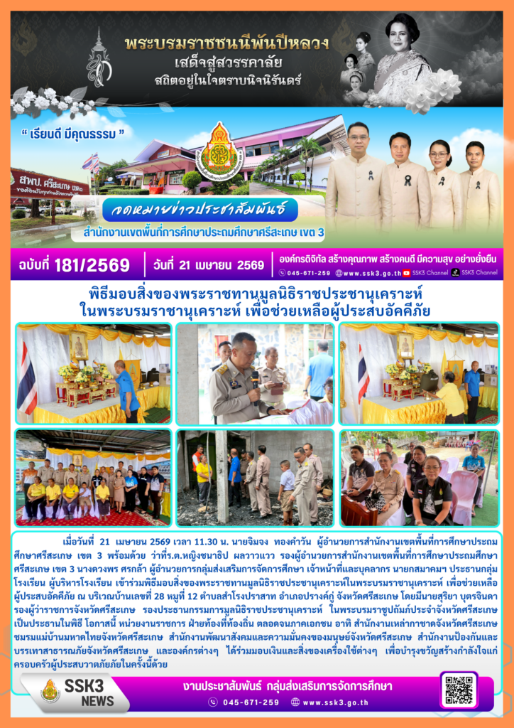 พิธีมอบสิ่งของพระราชทานมูลนิธิราชประชานุเคราะห์ในพระบรมราชานุเคราะห์ เพื่อช่วยเหลือผู้ประสบอัคคีภัย เมษายน 22, 2026 Last updated : เมษายน 22, 2026 Chanyaphat จำนวนคนดู : 2