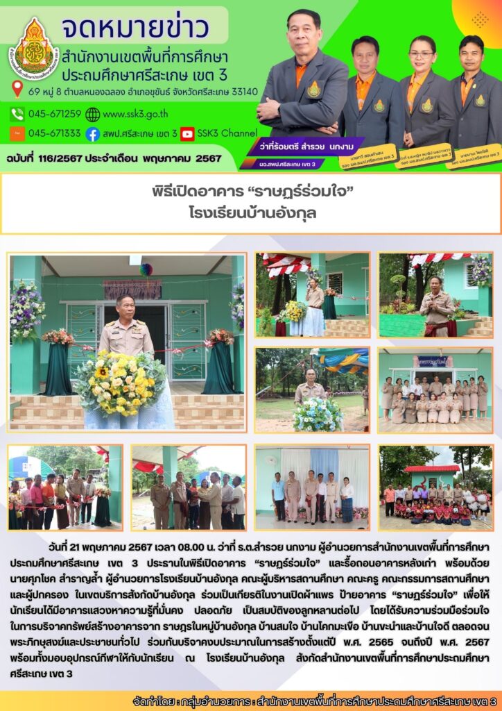 พิธีเปิดอาคาร “ราษฏร์ร่วมใจ” โรงเรียนบ้านอังกุล