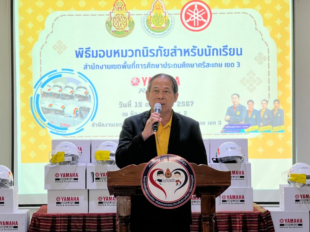 วันที่ 15 กรกฎาคม 2567 เวลา 10.00 น. ว่าที่ ร.ต.สำรวย นกงาม ผู้อำนวยการสำนักงานเขตพื้นที่การศึกษาประถมศึกษาศรีสะเกษ เขต 3 ให้เกียรติเป็นประธานในพิธีมอบหมวกนิรภัยสำหรับนักเรียน จำนวน 102 ใบ พร้อมด้วย นายทวี สอนคำเสน และนายมานะ ไชยโชติ รองผู้อำนวยการสำนักงานเขตพื้นที่การศึกษาประถมศึกษาศรีสะเกษ เขต 3 ผู้อำนวยการโรงเรียน ครู นักเรียนและบุคลากรทางการศึกษาในสังกัดร่วมพิธี โดยมีวัตถุประสงค์เพื่อเป็นการส่งเสริมมาตรการด้านความปลอดภัยให้กับนักเรียน และสร้างความตระหนักถึงการขับขี่ที่ปลอดภัยบนท้องถนน ซึ่งมีโรงเรียนที่ได้รับการจัดสรร จำนวน 44 โรงเรียน ได้แก่ โรงเรียนในเขตอำเภอขุขันธ์ 16 โรงเรียน อำเภอไพรบึง 5 โรงเรียน อำเภอปรางค์กู่ 10 โรงเรียน และอำเภอภูสิงห์ 13 โรงเรียน เป็นโรงเรียนในพื้นที่ที่มีความเสี่ยงสูงต่อการเกิดอุบัติเหตุในการใช้รถใช้ถนน โดยได้รับความอนุเคราะห์หมวกนิรภัยจากบริษัทไทยยามาฮ่า มอเตอร์ จำกัด ณ ห้องประชุมจตุรมิตร 2 สำนักงานเขตพื้นที่การศึกษาประถมศึกษาศรีสะเกษ เขต 3