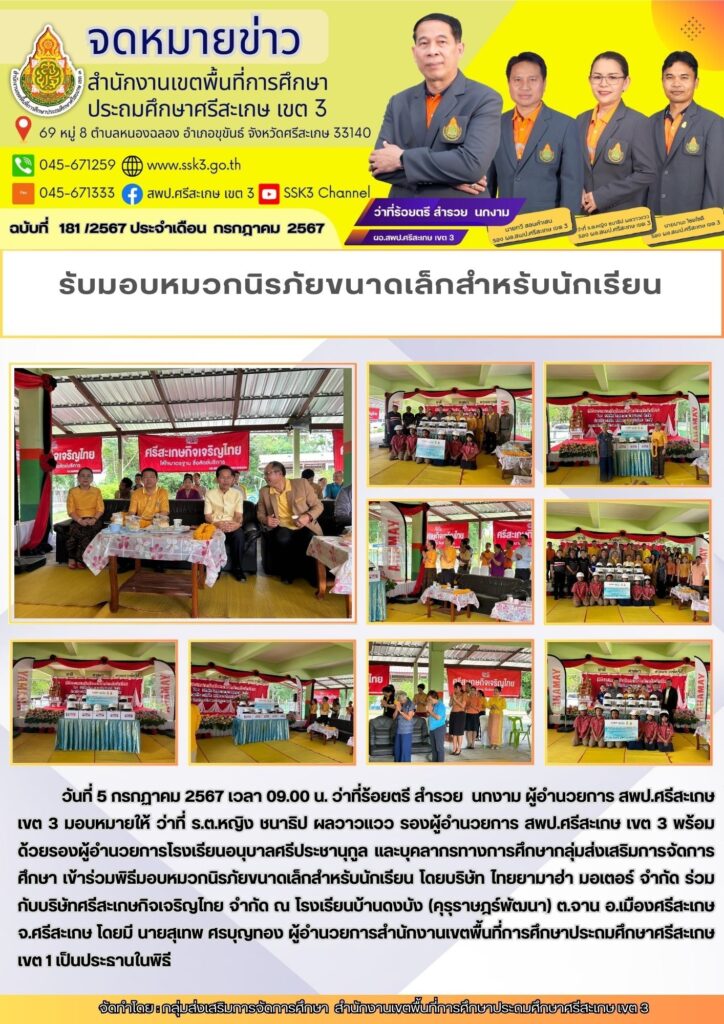 รับมอบหมวกนิรภัยขนาดเล็กสำหรับนักเรียน