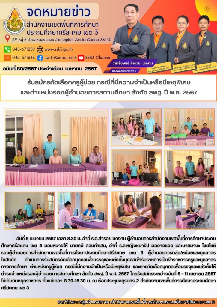 รับสมัครคัดเลือกครูผู้ช่วย กรณีที่มีความจำเป็นหรือมีเหตุพิเศษและตำแหน่งรองผู้อำนวยการสถานศึกษา สังกัด สพฐ. ปี พ.ศ. 2567 เมษายน 24, 2024 Last updated : เมษายน 24, 2024 Chananthita จำนวนคนดู : 170