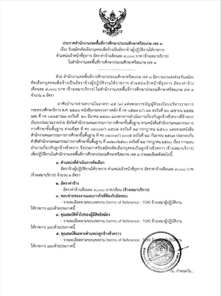 รับสมัครคัดเลือกบุคคลเพื่อจ้างเป็นอัตราจ้างผู้ปฏิบัติงานให้ราชการ ตำแหน่ง เจ้าหน้าที่ธุรการอัตราค่าจ้างเดือนละ 9,000 บาท (จ้างเหมาบริการ) ธันวาคม 17, 2024 Last updated : ธันวาคม 17, 2024 person รายละเอียดเพิ่มเติม จำนวนคนดู : 45