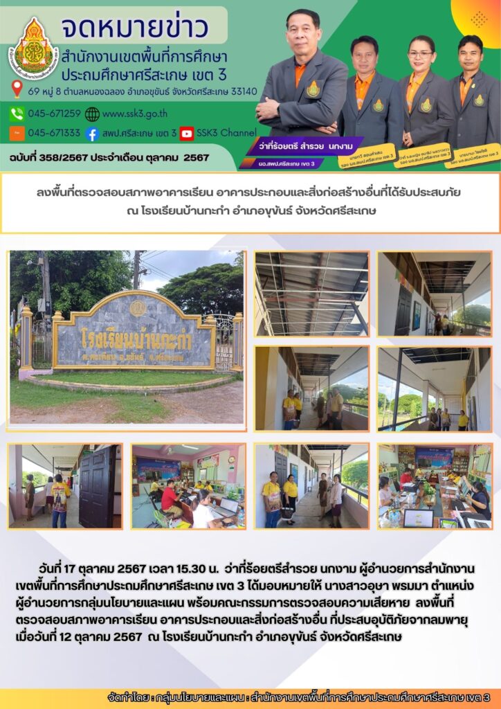 ลงพื้นที่ตรวจสอบสภาพอาคารเรียน อาคารประกอบและสิ่งก่อสร้างอื่นที่ได้รับประสบภัย ณ โรงเรียนบ้านกะกำ