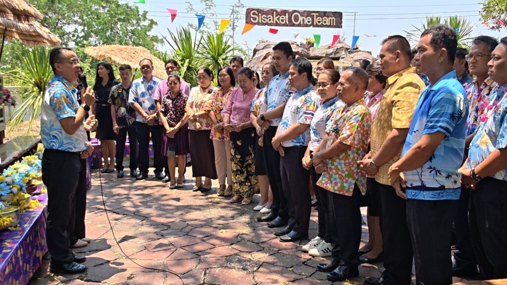 วันที่ 10 เมษายน 2569 เวลา 07.00 น. สำนักงานเขตพื้นที่การศึกษาประถมศึกษาศรีสะเกษ เขต 3 จัดพิธีเจริญพระพุทธมนต์และตักบาตรข้าวสารอาหารแห้ง เนื่องในโอกาสวันขึ้นปีใหม่ไทย และเพื่อสืบสานประเพณีอันดีงามของไทยในช่วงเทศกาลสงกรานต์ โดยมีผู้บริหารการศึกษา คณะอนุกรรมการข้าราชการครูและบุคลากรทางการศึกษาประจำเขตพื้นที่การศึกษา (อ.ก.ค.ศ.เขตพื้นที่การศึกษา) ข้าราชการบำนาญ ผู้อำนวยการสถานศึกษา และบุคลากรในสังกัด เข้าร่วมกิจกรรมอย่างพร้อมเพรียง เพื่อความเป็นสิริมงคลแก่ตนเองและองค์กร