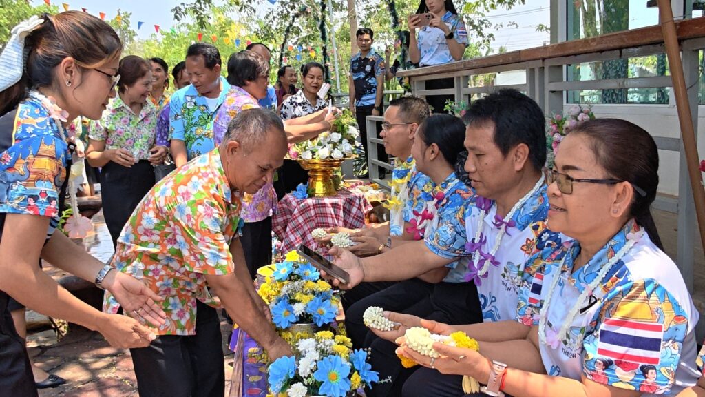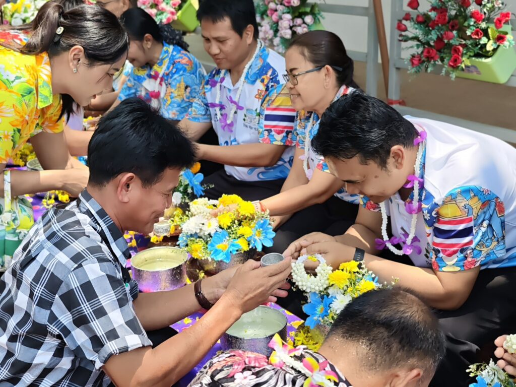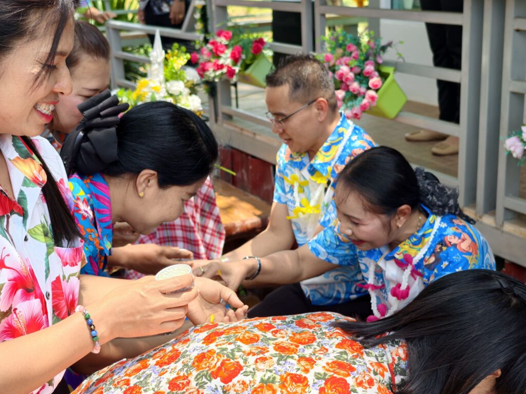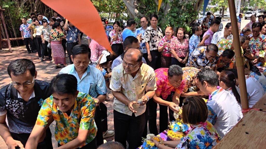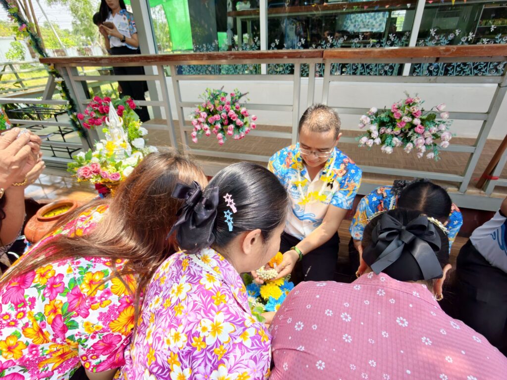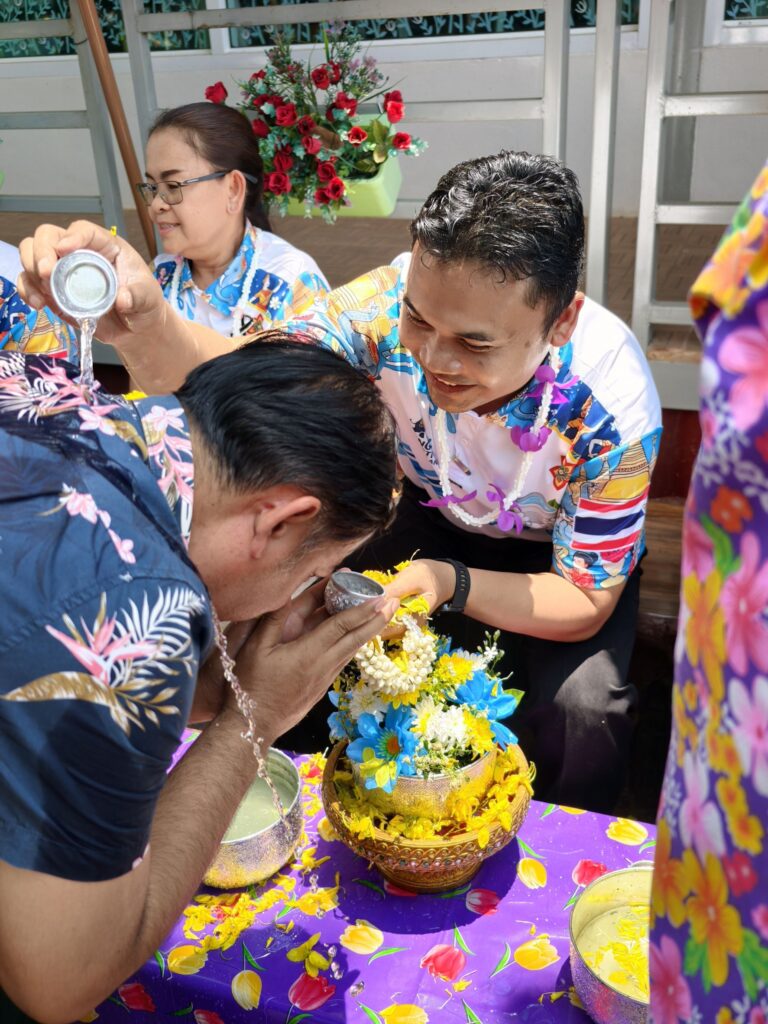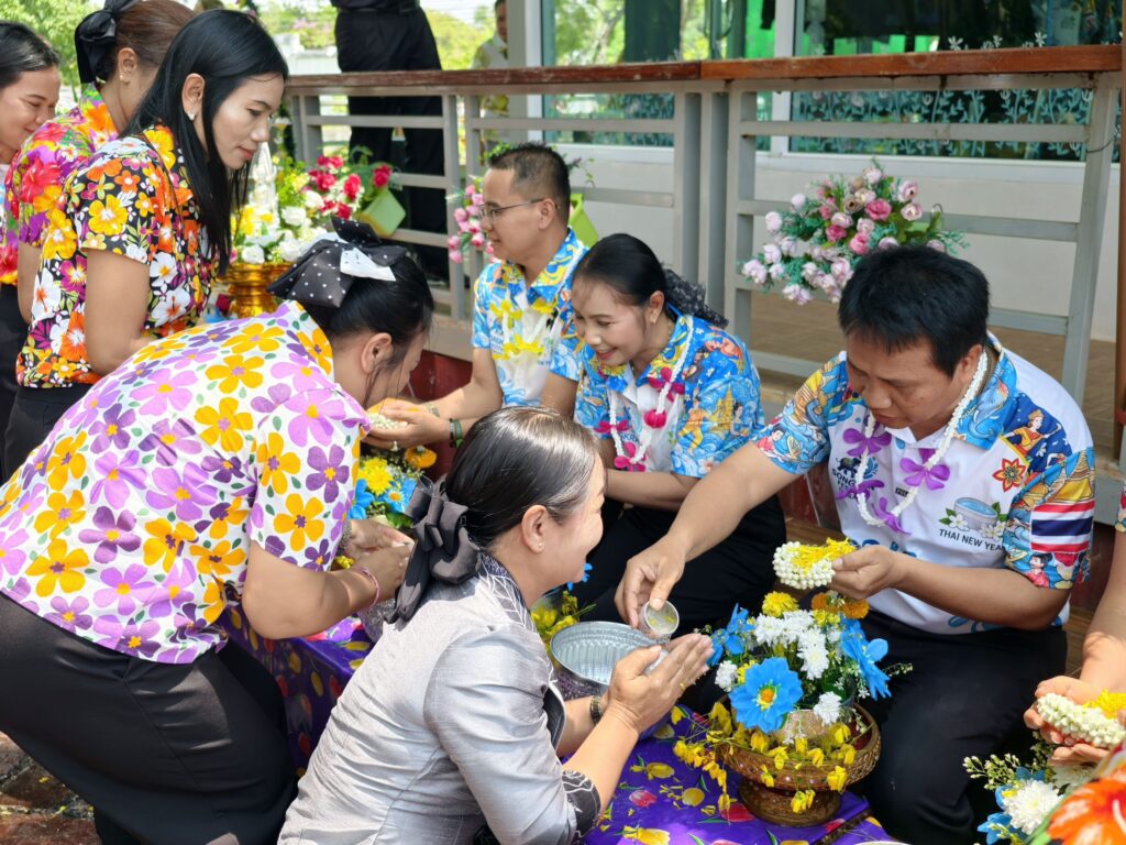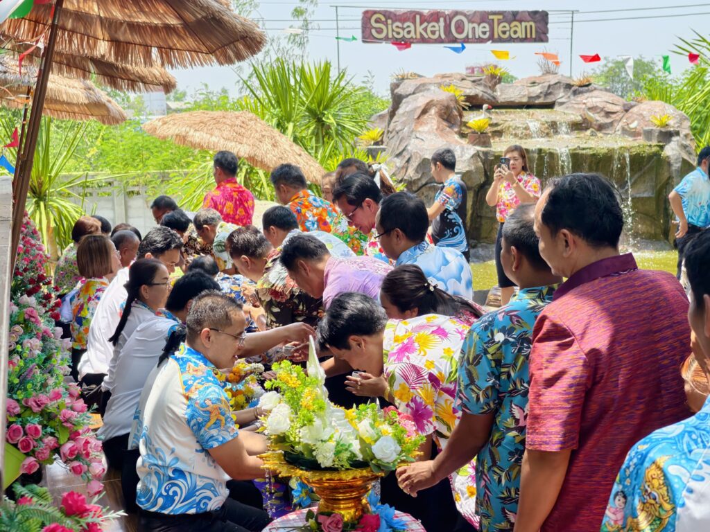 ต่อมาในเวลา 11.00 น. ได้จัดพิธีรดน้ำขอพรจากผู้อำนวยการสำนักงานเขตพื้นที่การศึกษาประถมศึกษาศรีสะเกษ เขต 3 บุคลากรทางการศึกษาผู้อาวุโส และข้าราชการบำนาญ เพื่อแสดงความเคารพและขอพรเนื่องในโอกาสวันปีใหม่ไทย โดยบรรยากาศภายในงานเป็นไปอย่างอบอุ่น เปี่ยมด้วยความรัก ความสามัคคี และความเป็นสิริมงคล