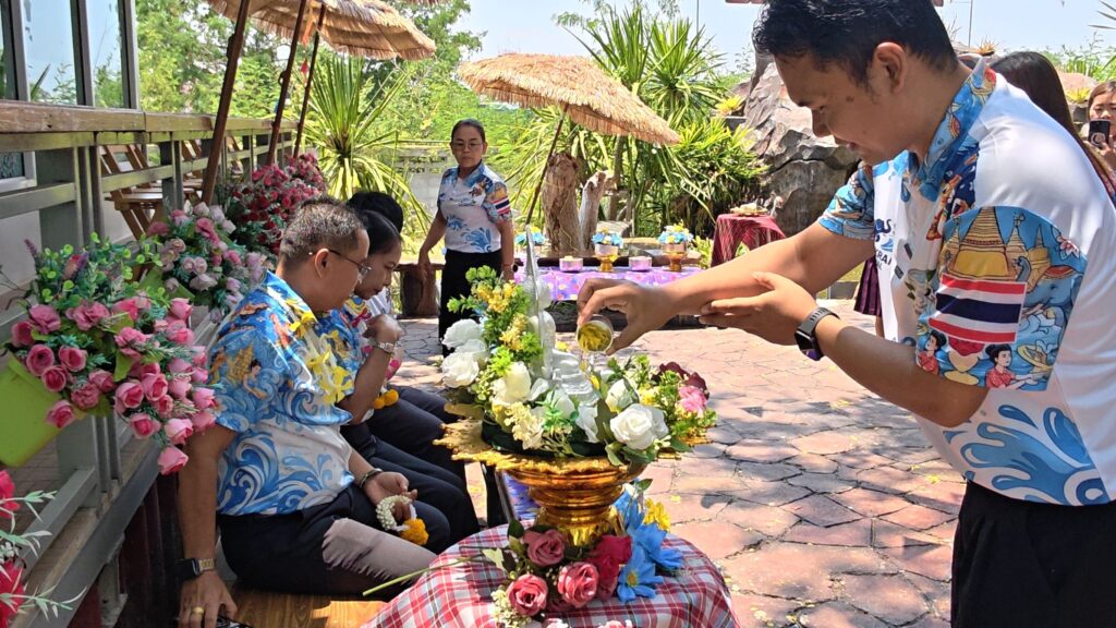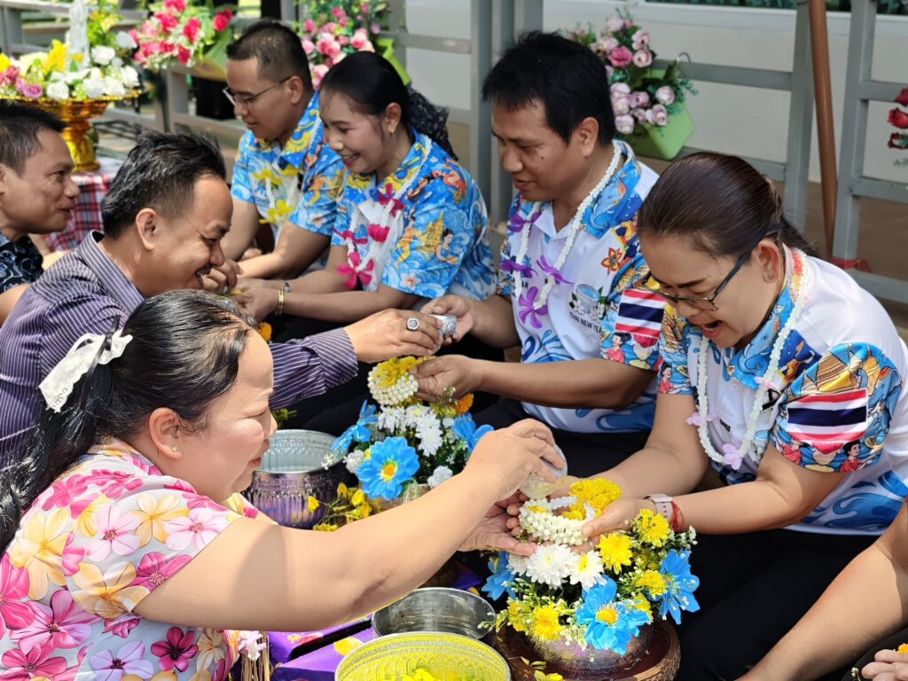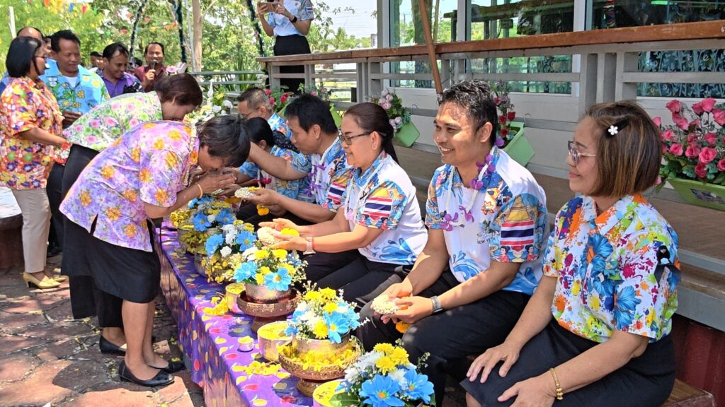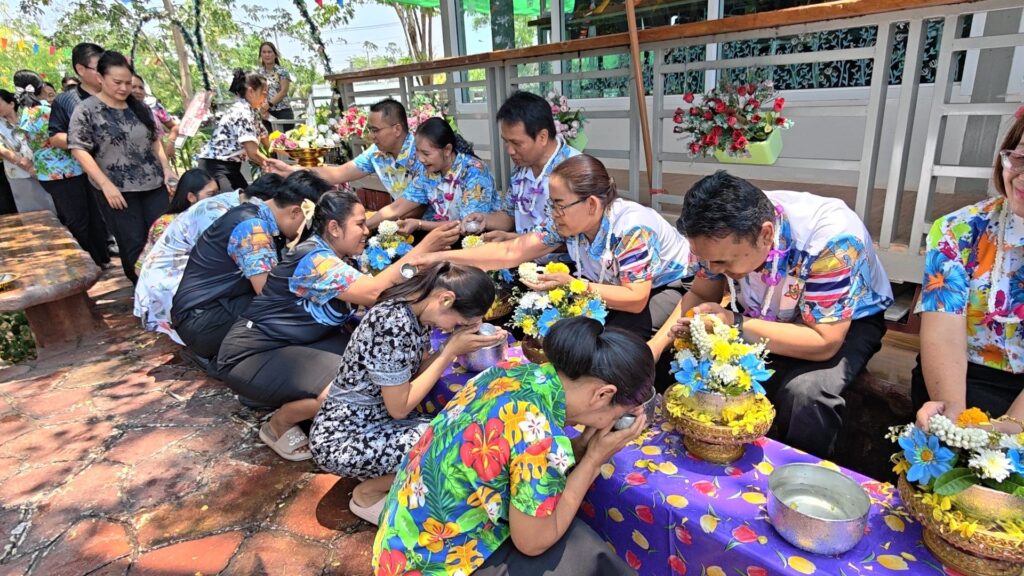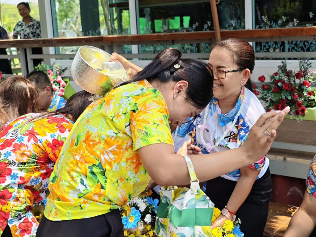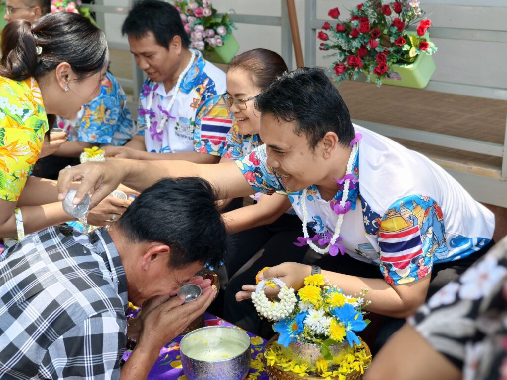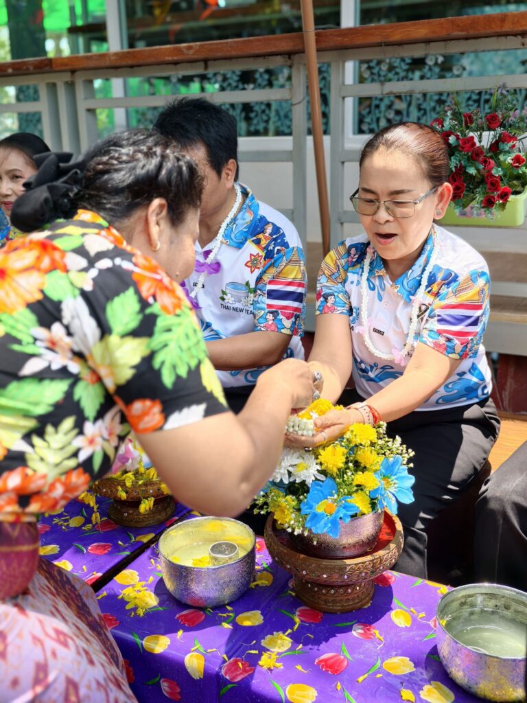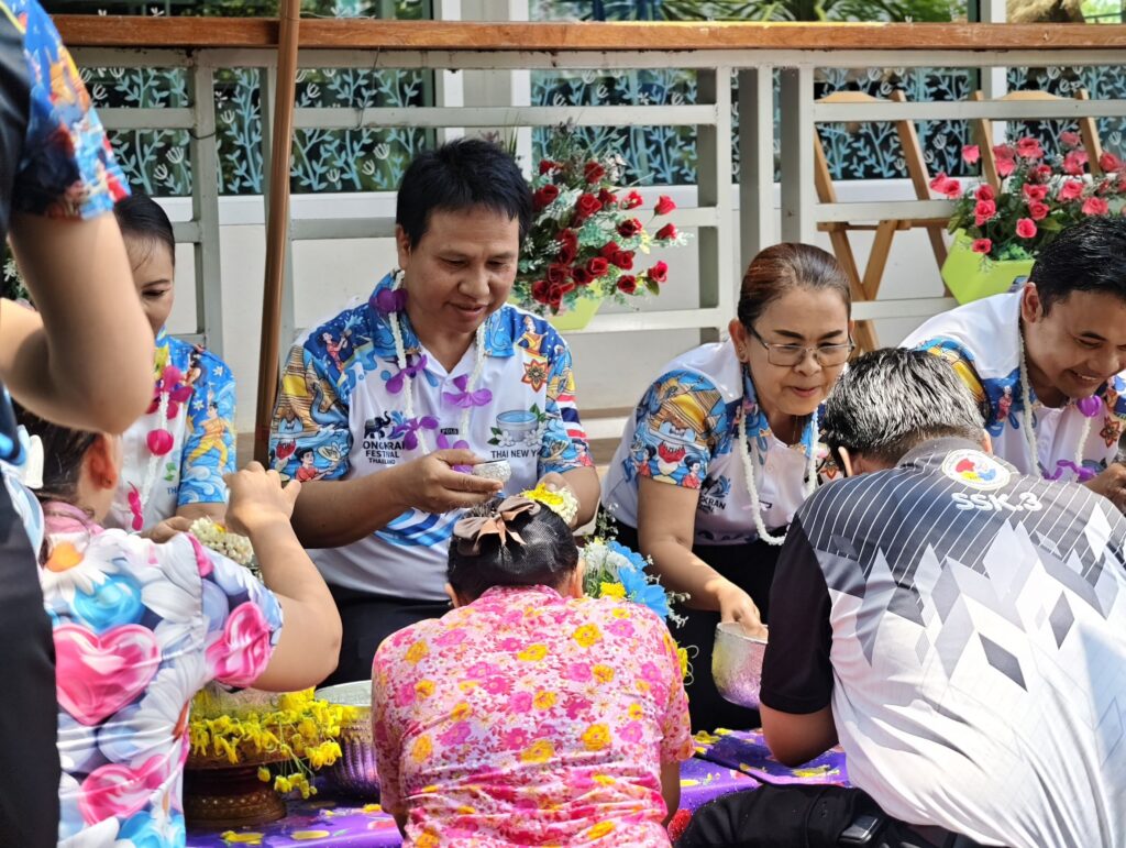 ต่อมาในเวลา 11.00 น. ได้จัดพิธีรดน้ำขอพรจากผู้อำนวยการสำนักงานเขตพื้นที่การศึกษาประถมศึกษาศรีสะเกษ เขต 3 บุคลากรทางการศึกษาผู้อาวุโส และข้าราชการบำนาญ เพื่อแสดงความเคารพและขอพรเนื่องในโอกาสวันปีใหม่ไทย โดยบรรยากาศภายในงานเป็นไปอย่างอบอุ่น เปี่ยมด้วยความรัก ความสามัคคี และความเป็นสิริมงคล