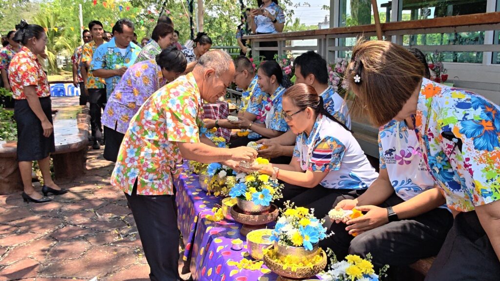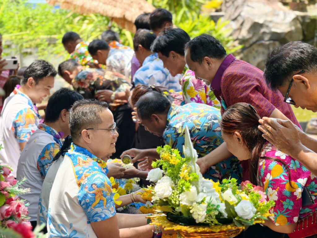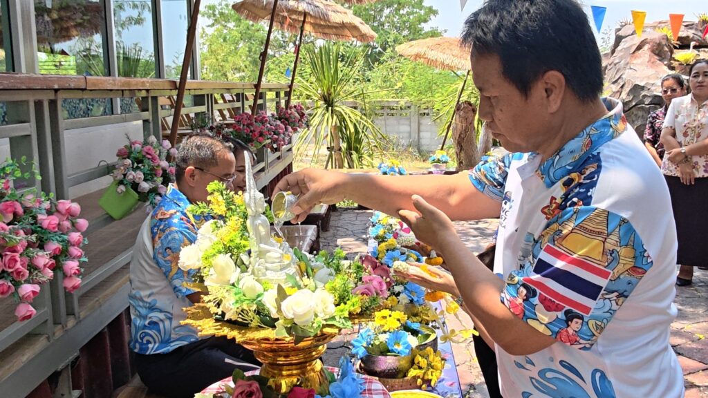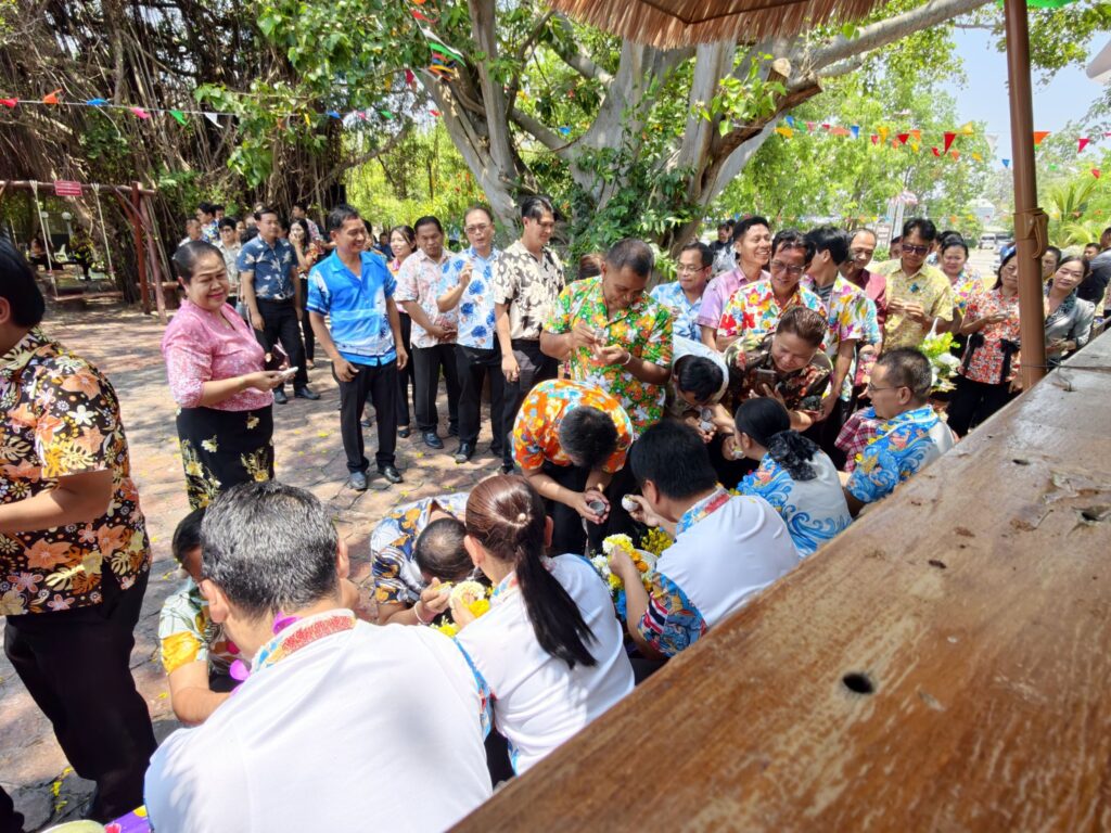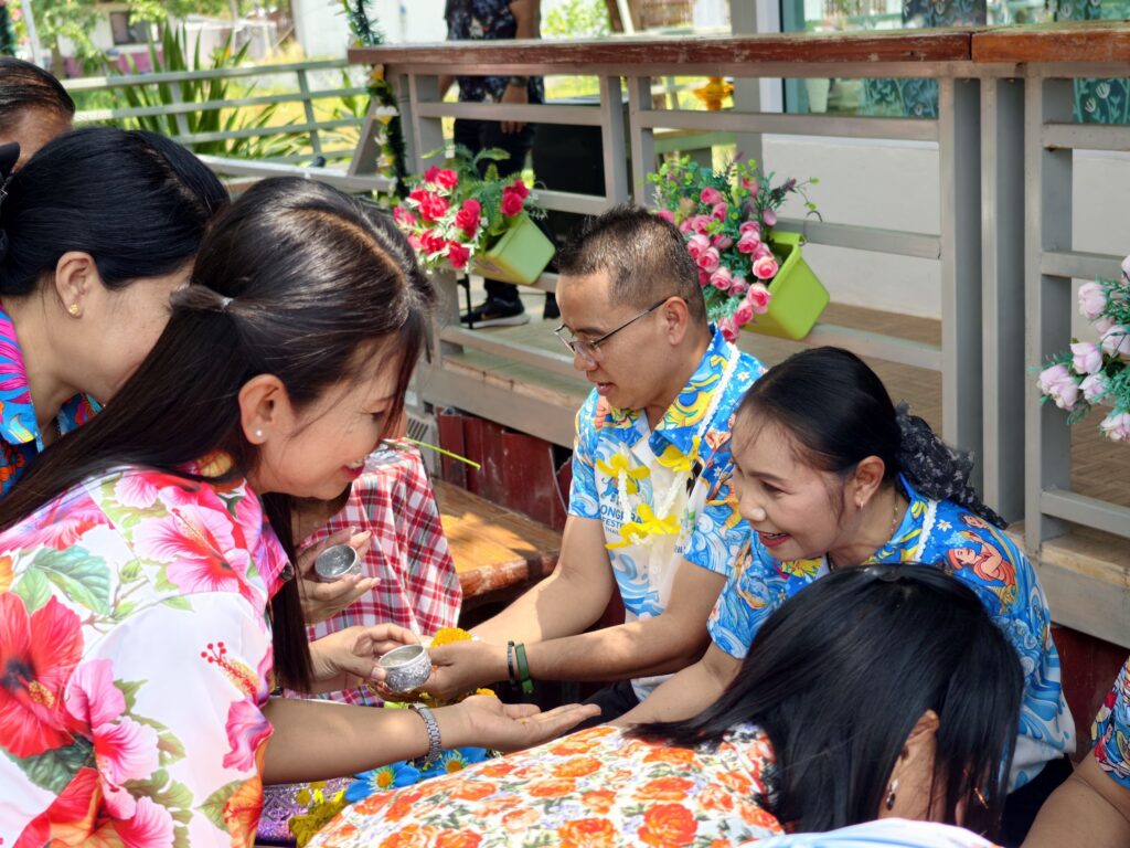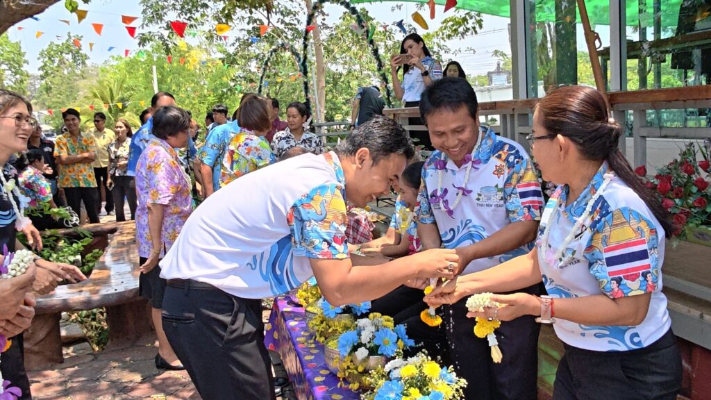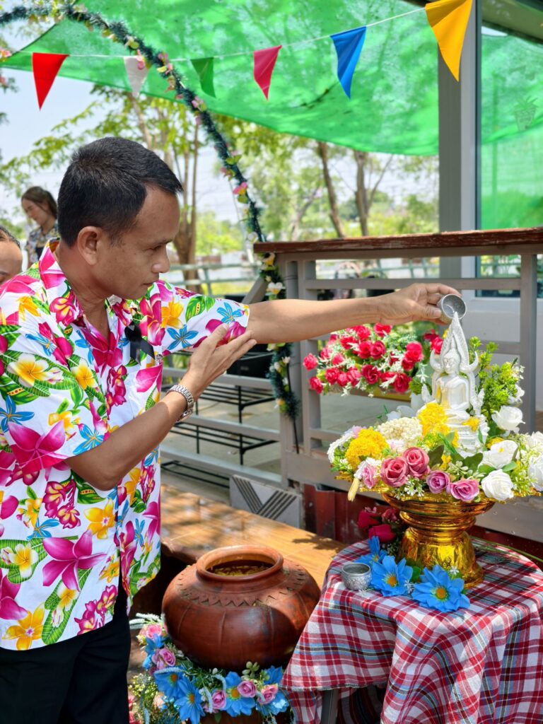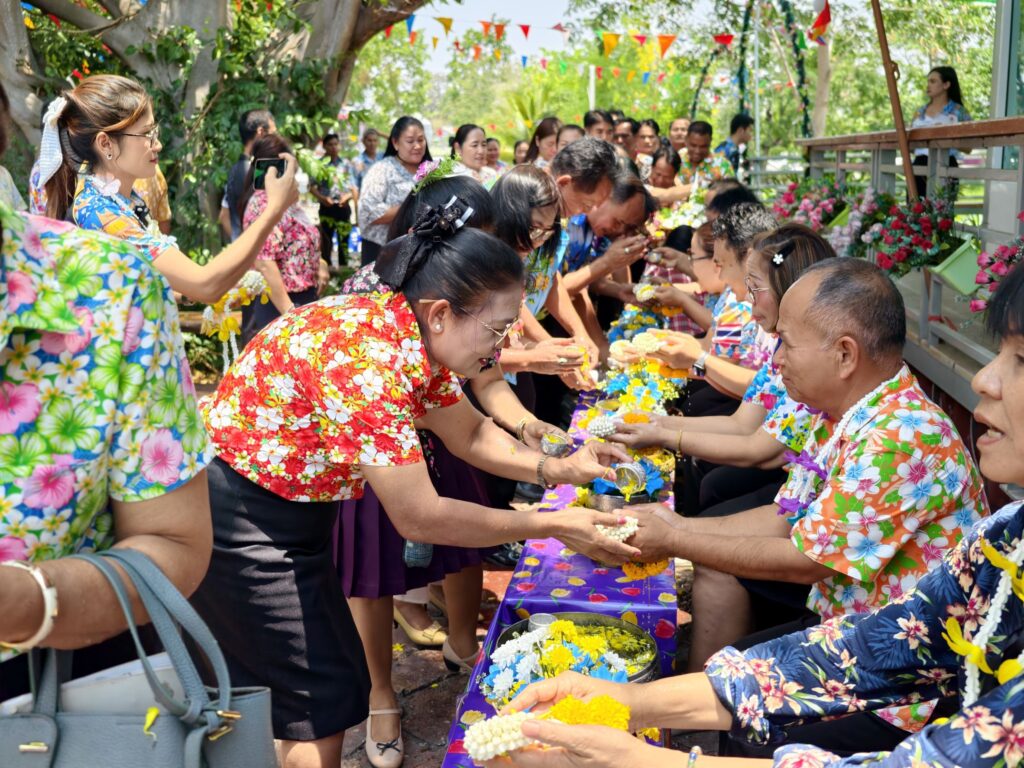 ต่อมาในเวลา 11.00 น. ได้จัดพิธีรดน้ำขอพรจากผู้อำนวยการสำนักงานเขตพื้นที่การศึกษาประถมศึกษาศรีสะเกษ เขต 3 บุคลากรทางการศึกษาผู้อาวุโส และข้าราชการบำนาญ เพื่อแสดงความเคารพและขอพรเนื่องในโอกาสวันปีใหม่ไทย โดยบรรยากาศภายในงานเป็นไปอย่างอบอุ่น เปี่ยมด้วยความรัก ความสามัคคี และความเป็นสิริมงคล