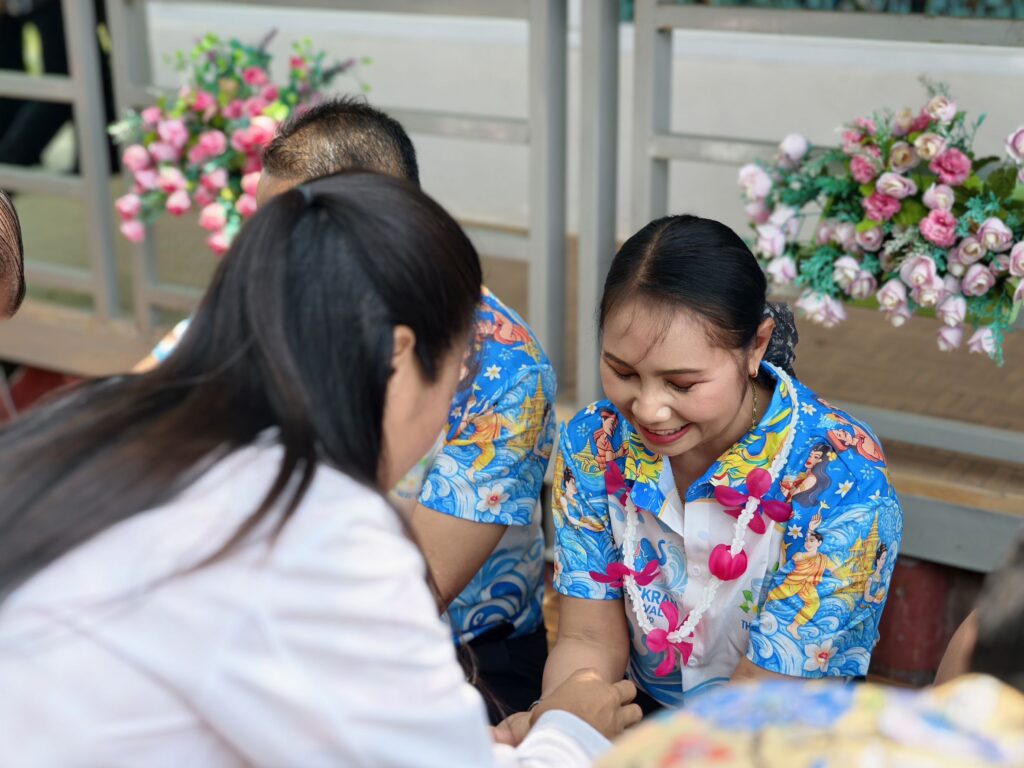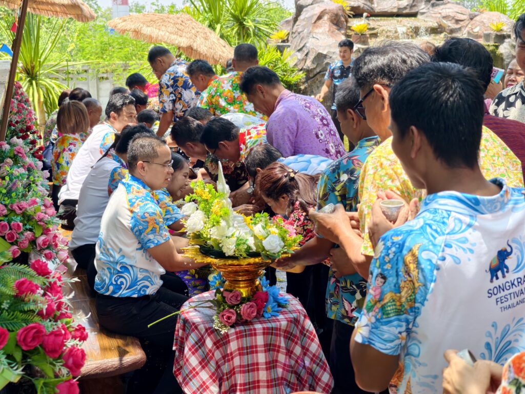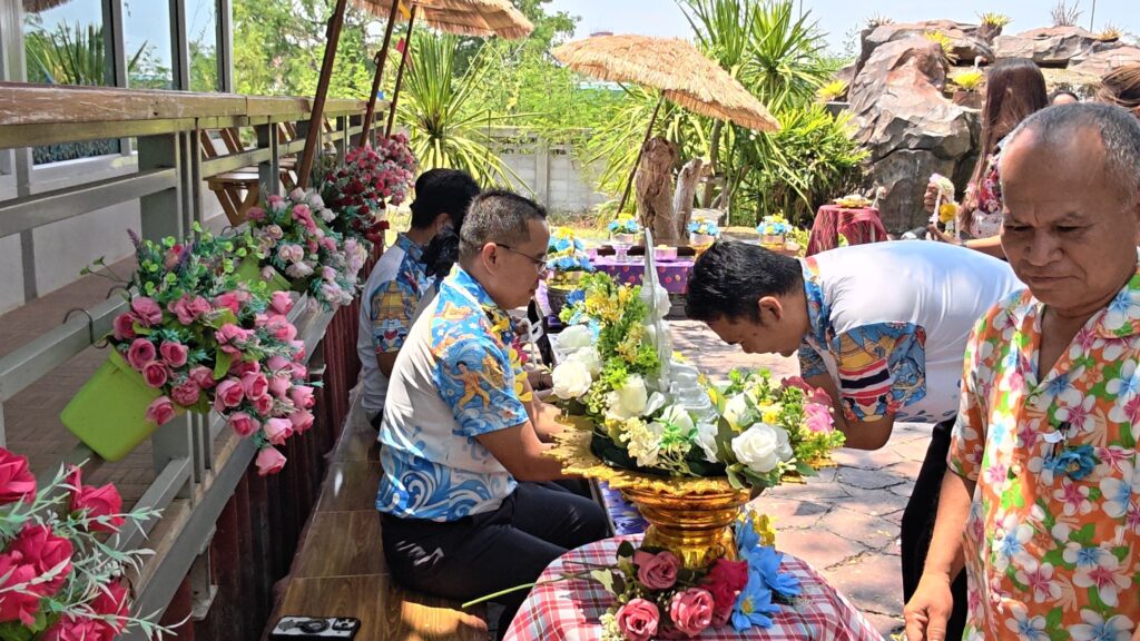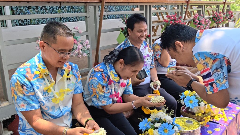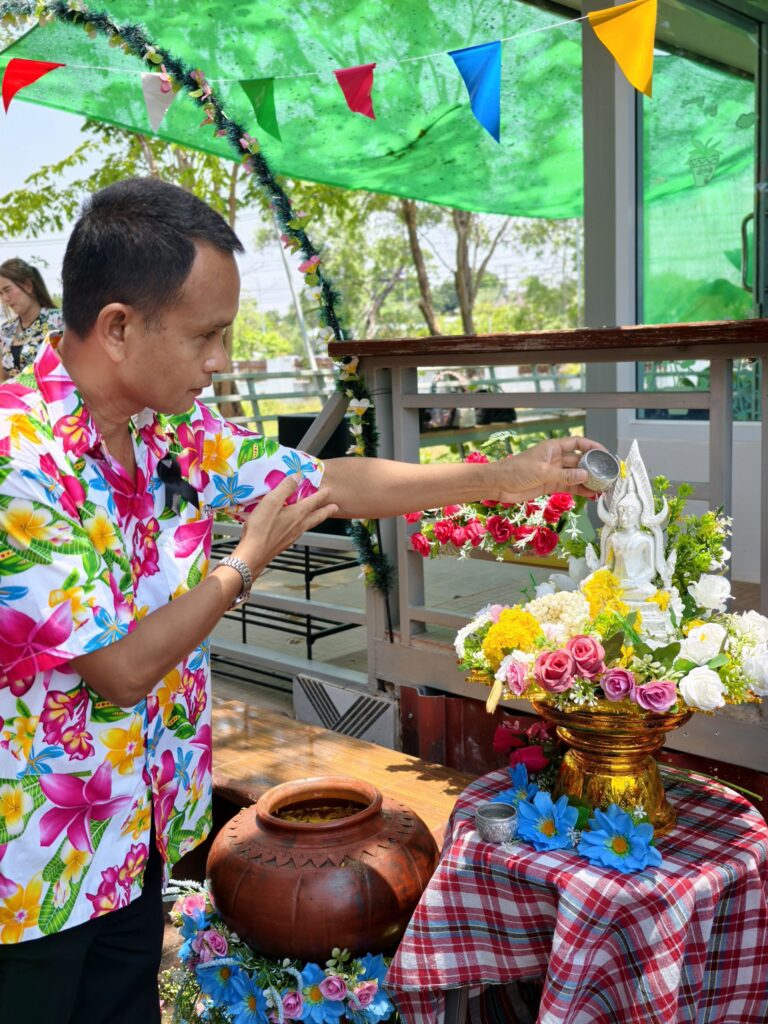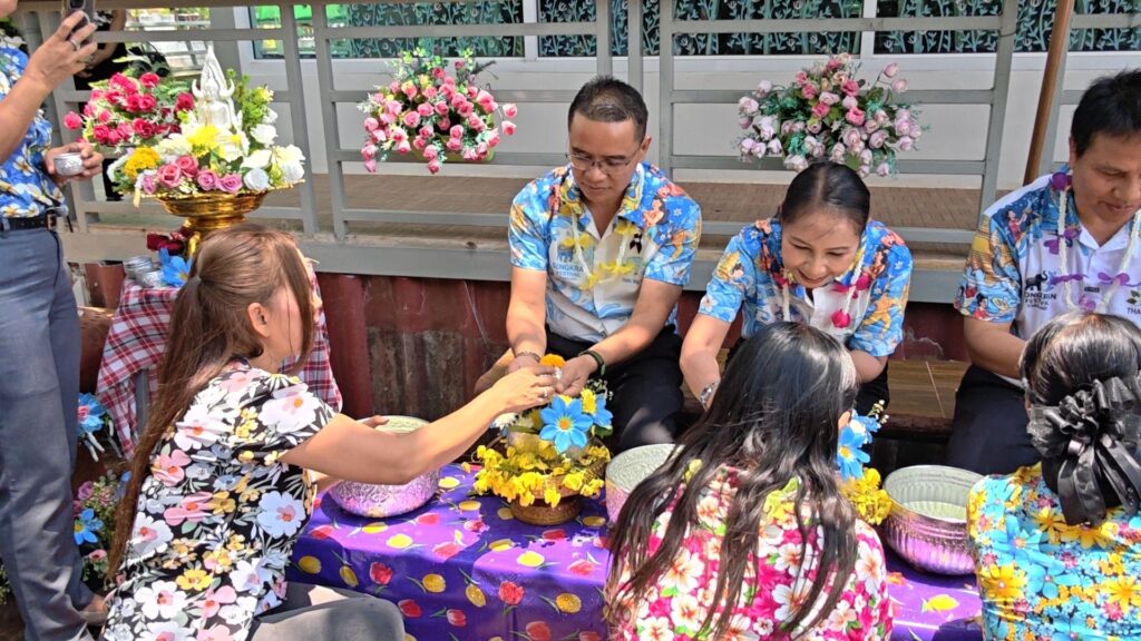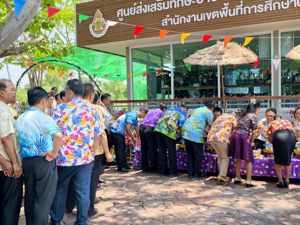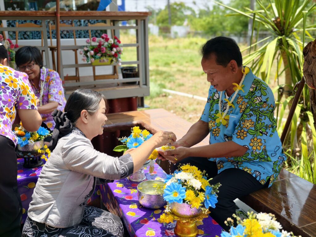 ต่อมาในเวลา 11.00 น. ได้จัดพิธีรดน้ำขอพรจากผู้อำนวยการสำนักงานเขตพื้นที่การศึกษาประถมศึกษาศรีสะเกษ เขต 3 บุคลากรทางการศึกษาผู้อาวุโส และข้าราชการบำนาญ เพื่อแสดงความเคารพและขอพรเนื่องในโอกาสวันปีใหม่ไทย โดยบรรยากาศภายในงานเป็นไปอย่างอบอุ่น เปี่ยมด้วยความรัก ความสามัคคี และความเป็นสิริมงคล
