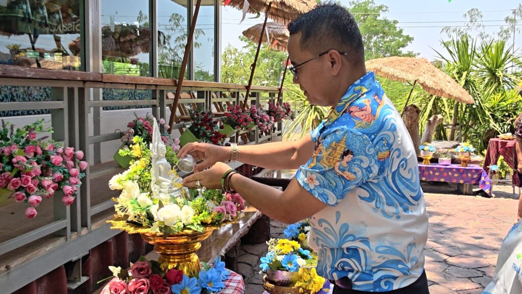 สพป.ศรีสะเกษ เขต 3 จัดพิธีเจริญพระพุทธมนต์ ตักบาตรข้าวสารอาหารแห้ง และรดน้ำขอพร รับปีใหม่ไทย สืบสานประเพณีสงกรานต์