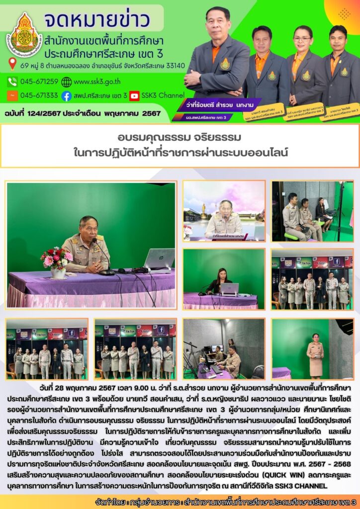 อบรมคุณธรรม จริยธรรม ในการปฏิบัติหน้าที่ราชการผ่านระบบออนไลน์ มิถุนายน 20, 2024 Last updated : มิถุนายน 20, 2024 Chananthita จำนวนคนดู : 111