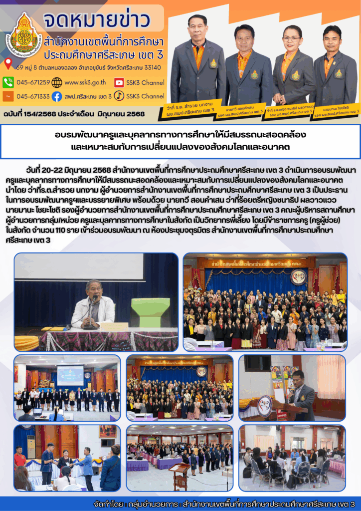 อบรมพัฒนาครูและบุคลากรทางการศึกษาให้มีสมรรถนะสอดคล้องและเหมาะสมกับการเปลี่ยนแปลงของสังคมโลกและอนาคต