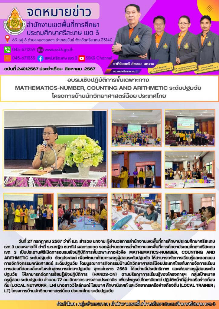 อบรมเชิงปฏิบัติการขั้นเฉพาะทางหัวข้อ Mathematics-Number, Counting and Arithmetic ระดับปฐมวัย โครงการบ้านนักวิทยาศาสตร์น้อย ประเทศไทย สิงหาคม 7, 2024 Last updated : สิงหาคม 7, 2024 Chananthita จำนวนคนดู : 76