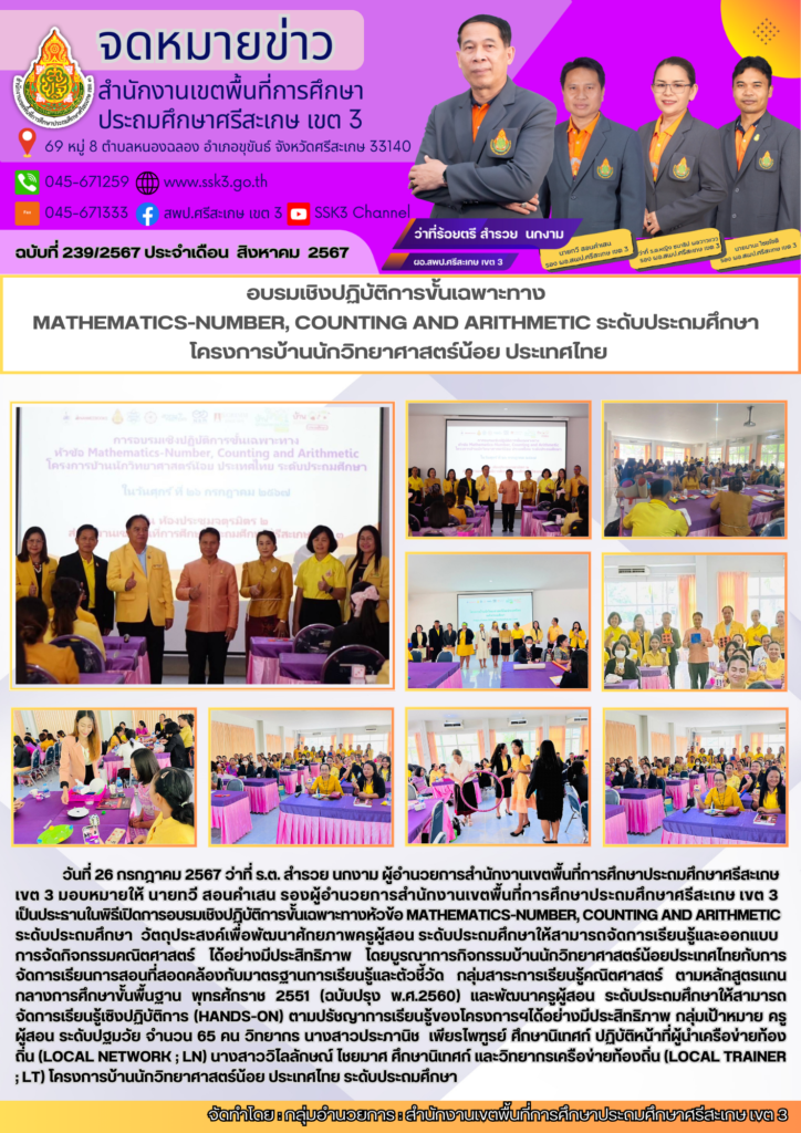 อบรมเชิงปฏิบัติการขั้นเฉพาะทางหัวข้อ Mathematics-Number, Counting and Arithmetic ระดับประถมศึกษา โครงการบ้านนักวิทยาศาสตร์น้อย ประเทศไทย สิงหาคม 7, 2024 Last updated : สิงหาคม 7, 2024 Chananthita จำนวนคนดู : 79