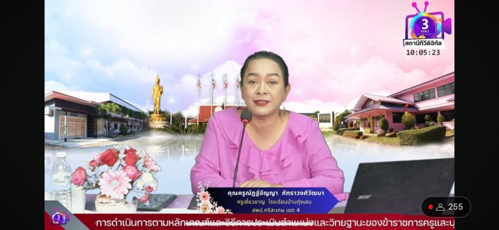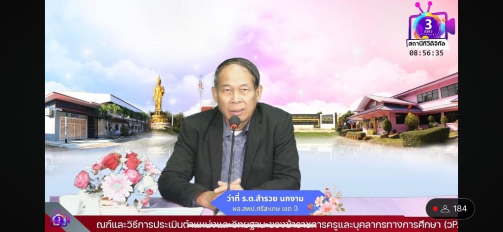 วันที่ 24 เมษายน 2567 เวลา 09.00 น. ว่าที่ ร.ต. สำรวย นกงาม ผู้อำนวยการสำนักงานเขตพื้นที่การศึกษาประถมศึกษาศรีสะเกษ เขต 3 เป็นประธานในพิธีเปิดและบรรยายพิเศษ การอบรมเสริมสร้างความรู้ความเข้าใจการดำเนินการตามหลักเกณฑ์และวิธีการประเมินตำแหน่งและวิทยฐานะข้าราชการครูและบุคลากรทางการศึกษา (วPA) ผ่านระบบออนไลน์ ทางสถานีทีวีดิจิทัล SSK3 CHANnel พร้อมด้วย นายมานะ ไชยโชติ รองผู้อำนวยการสำนักงานเขตพื้นที่การศึกษาประถมศึกษาศรีสะเกษ เขต 3, ผู้อำนวยการกลุ่ม/หน่วย ร่วมดำเนินการจัดการอบรม โดยมี คุณครูณัฎฐ์อัญญา ภัทราวงศ์วัฒนา ตำแหน่งครู วิทยฐานะครูเชี่ยวชาญ สำนักงานเขตพื้นที่การศึกษาประถมศึกษาศรีสะเกษ เขต 4 เป็นวิทยากรในการอบรมครั้งนี้ เพื่อเสริมสร้างความรู้ ความเข้าใจการดำเนินการตามหลักเกณฑ์ดังกล่าว เป็นการลดภาระครูและบุคลากรทางการศึกษาในการประเมิน รวมทั้ง แลกเปลี่ยนเรียนรู้รูปแบบ วิธีการ เพื่อนำไปใช้ในการประกอบการพิจารณาเลื่อนเงินเดือน การคงวิทยฐานะตามมาตรา 55 เป็นคุณสมบัติในการขอมีและเลื่อนวิทยฐานะ ณ ห้องประชุมออนไลน์ สำนักงานเขตพื้นที่การศึกษาประถมศึกษาศรีสะเกษ เขต 3