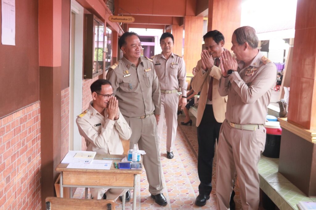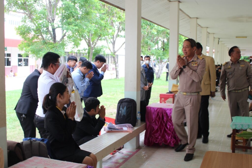 วันเสาร์ ที่ 22 มิถุนายน 2567 ว่าที่ ร.ต.สำรวย นกงาม ผู้อำนวยการสำนักงานเขตพื้นที่การศึกษาประถมศึกษาศรีสะเกษ เขต 3 พร้อมด้วย รศ.ดร.อุดมพันธ์ุ พิชญ์ประเสริฐ ประธาน อ.ก.ค.ศ. เขตพื้นที่การศึกษาประถมศึกษาศรีสะเกษ เขต 3 ลงพื้นที่ตรวจเยี่ยมและให้กำลังใจผู้เข้ารับการประเมิน ภาค ค (สัมภาษณ์) ผู้ผ่านภาค ก และ ภาค ข ในการสอบแข่งขันฯ ตำแหน่งครูผู้ช่วย สังกัด สพฐ. ปี พ.ศ. 2567 โดยมี นายมานะ ไชยโชติ รองผู้อำนวยการสำนักงานเขตพื้นที่การศึกษาประถมศึกษาศรีสะเกษ เขต 3 ประธานคณะกรรมการกลางประจำสนามสอบ และนายสุริเยศ ถุงจันทร์ ผอ.โรงเรียนอนุบาลศรีประชานุกูล ให้การต้อนรับพร้อมทั้งรายงานผลการดำเนินงาน จากการลงพื้นที่พบว่าเหตุการณ์ทั่วไปเป็นไปด้วยความเรียบร้อยผู้เข้ารับการประเมิน ภาค ค มีการเตรียมสื่อการสอนเพื่อรับการประเมินความสามารถด้านการสอน ที่แสดงถึงทักษะและศักยภาพด้านการจัดการเรียนการสอนของตนเองในสาขาที่สมัครสอบแข่งขัน ณ สนามสอบโรงเรียนอนุบาลศรีประชานุกูล