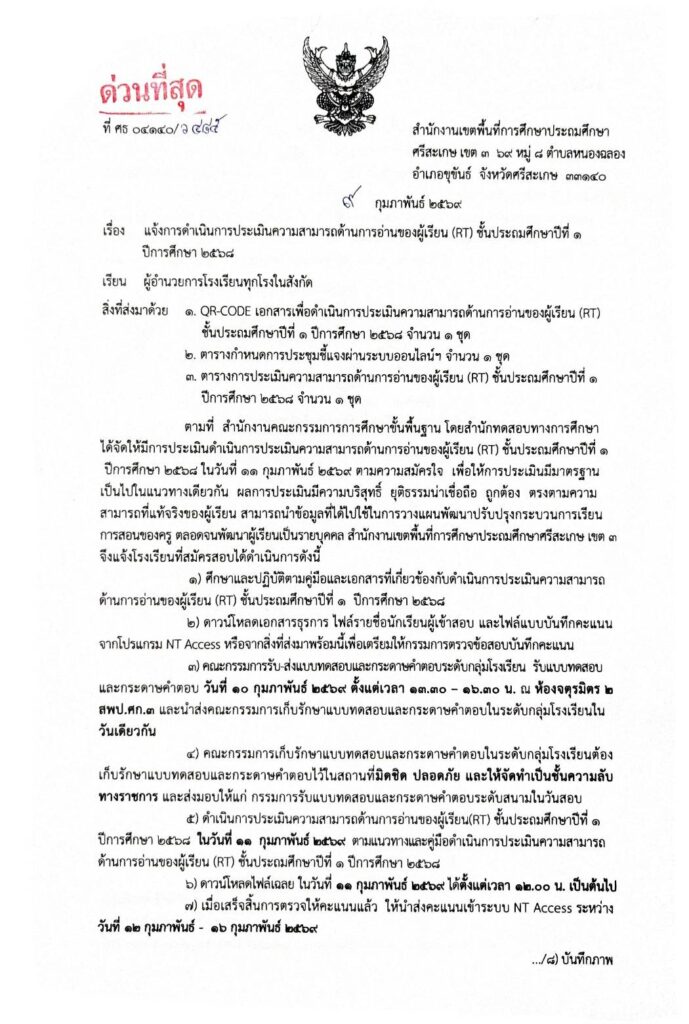 เรื่อง แจ้งการดำเนินการประเมินความสามารถด้านการอ่านของผู้เรียน (RT) ชั้น ป.1 ปีการศึกษา 2568 กุมภาพันธ์ 9, 2026 Last updated : กุมภาพันธ์ 9, 2026 nitad จำนวนคนดู : 42