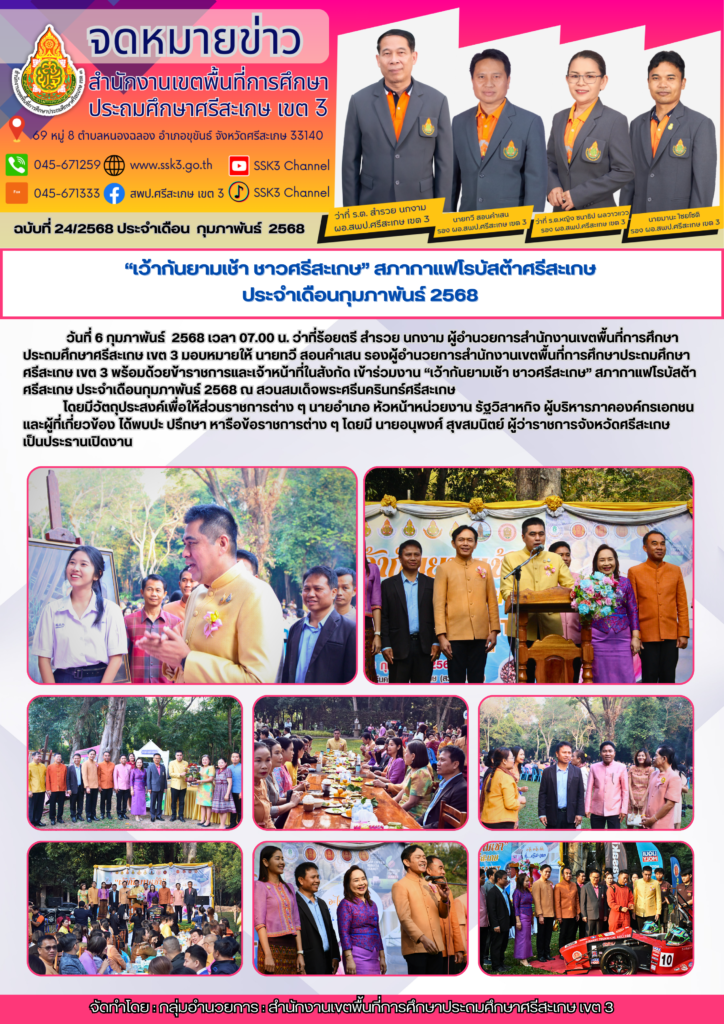 เว้ากันยามเช้า ชาวศรีสะเกษ สภากาแฟโรบัสต้าศรีสะเกษ กุมภาพันธ์ 17, 2025 Last updated : กุมภาพันธ์ 17, 2025 Chananthita จำนวนคนดู : 38