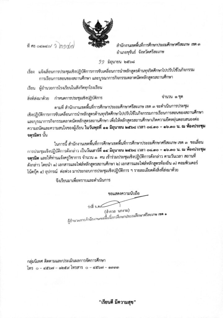 แจ้งเลื่อนการประชุมเชิงปฏิบัติการการขับเคลื่อนการนำหลักสูตรต้านการทุจริตศึกษาไปปรับใช้ในกิจกรรมการเรียนการสอนของสถานศึกษา และบูรณาการกิจกรรมตลาดนัดหลักสูตรสถานศึกษา มิถุนายน 11, 2025 Last updated : มิถุนายน 11, 2025 nitad แจ้งทุกโรงเรียนในสังกัด คลิ๊ก หนงสือที่ ว2147 จำนวนคนดู : 21