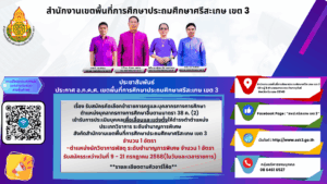 ประชาสัมพันธ์ประกาศ อ.ก.ค.ศ. เขตพื้นที่การศึกษาประถมศึกษาศรีสะเกษ เขต 3 เรื่อง รายชื่อผู้มีสิทธิเข้ารับการคัดเลือกบุคคลเพื่อบรรจุและแต่งตั้งให้ดำรงตำแหน่งรองผู้อำนวยการสถานศึกษา และผู้อำนวยการสถานศึกษา สังกัดสำนักงานคณะกรรมการการศึกษาขั้นพื้นฐาน ปี พ.ศ. 2568