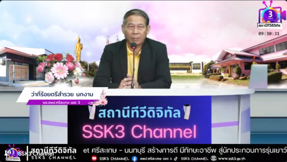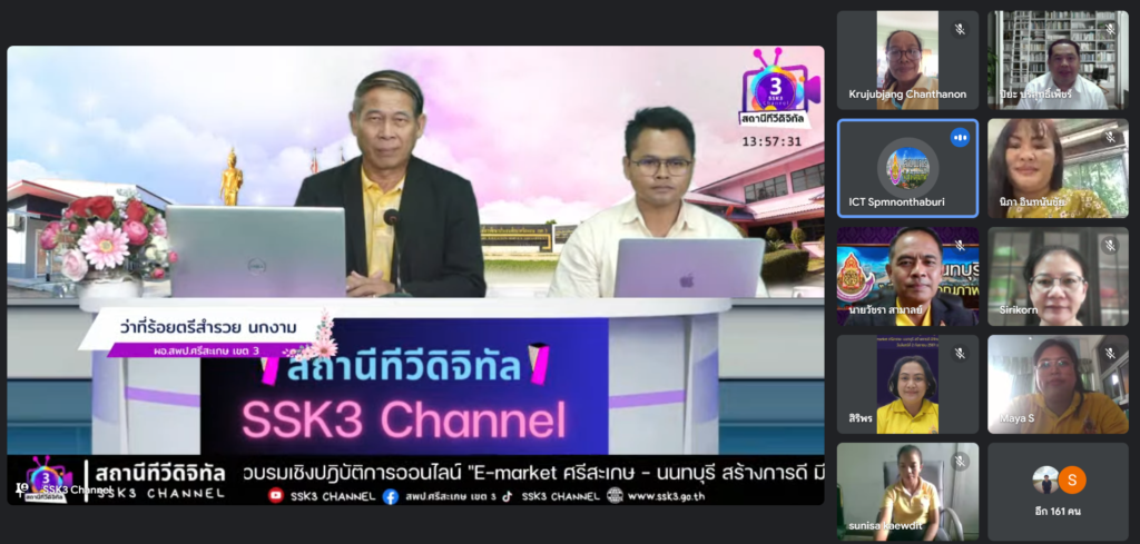 วันที่ 2 กันยายน 2567 สำนักงานเขตพื้นที่การศึกษาประถมศึกษาศรีสะเกษ เขต 3 และสำนักงานเขตพื้นที่การศึกษามัธยมศึกษานนทบุรี ดำเนินการอบรมเชิงปฏิบัติการออนไลน์ “E – Market ศรีสะเกษ - นนทบุรี สร้างการดี มีทักษะอาชีพ สู่นักประกอบการรุ่นเยาว์” โดยมี ว่าที่ ร.ต. สำรวย นกงาม ผู้อำนวยการสำนักงานเขตพื้นที่การศึกษาประถมศึกษาศรีสะเกษ เขต 3 ผู้บริหารสถานศึกษา ครู และบุคลากรในสังกัดสำนักงานเขตพื้นที่การศึกษาประถมศึกษาศรีสะเกษ เขต 3 ร่วมเป็นวิทยากรการอบรม ในการนี้ นายสิริพงศ์ อังคสกุลเกียรติ ผู้ช่วยรัฐมนตรีประจำกระทรวงศึกษาธิการ ให้เกียรติเป็นประธานในพิธีเปิด กล่าวเปิดการอบรมและบรรยายพิเศษ ซึ่งการอบรมในครั้งนี้มีวัตถุประสงค์เพื่อส่งเสริมทักษะนักเรียนเป็น ผู้ประกอบการ และมีรายได้ระหว่างเรียน และสามารถเผยแพร่และจัดจําหน่ายสินค้าและผลิตภัณฑ์บนเว็บไซต์และแพลตฟอร์มในรูปแบบออนไลน์ได้ตามนโยบายเรียนดี มีความสุข ณ สถานีทีวีดิจิทัล SSK3 Channel สำนักงานเขตพื้นที่การศึกษาประถมศึกษาศรีสะเกษ เขต 3